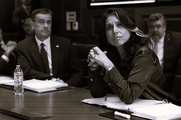 The intelligence community is a den of thieves. Anyone involved in that type of work, top to bottom, I believe has to operate in a moral gray zone. Some more than others, of course. Tulsi being the head of our intel community, I have no doubt the skeletons are quickly piling high in her closet.